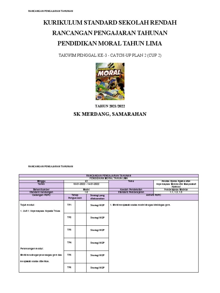 RPT Pendidikan Moral Tahun 5. Pautan di bawah ini akan diwujudkan nanti menjelang bermulanya persediaan sesi persekolahan 2019. Full PDF Package Download Full PDF Package.